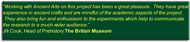 As part of our journey to bring the past to life, Ancient Arts is involved in a number of experimental projects. We take archaeological evidence from excavations and artefacts and attempt to replicate & understand the processes that made them.
